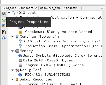 可以發現build/default、debug/default、dist/default/底下存有編譯時期產生之檔案,而nbproject/private則存有當前專案於當前系統中實際之相依toolchain路徑。
